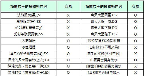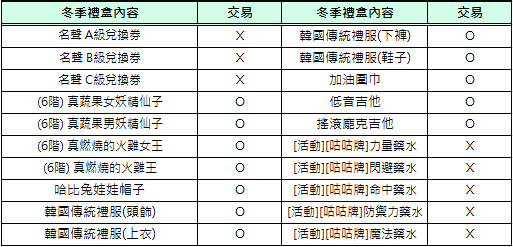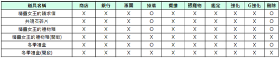 2) 活動期間[精靈女王的請求信]和[共鳴石碎片], [精靈女王的禮物箱], [冬季禮盒]不可交易及銀行保管。 (但,箱子內部份道具可交易)
