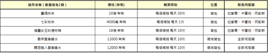 5) [活動特別商店],每天0點會初始化購買次數,無法在飛越廣場使用。