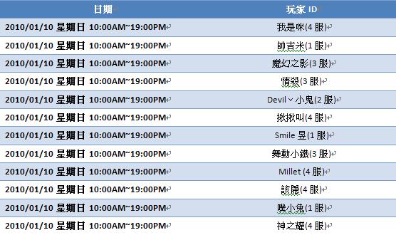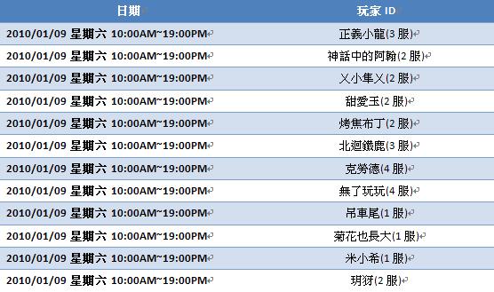 以下為【希望戀曲online】每日名單,請與會玩家查閱: