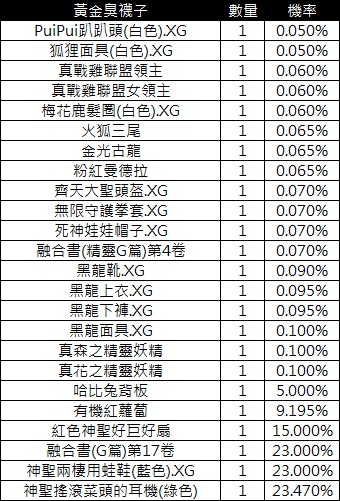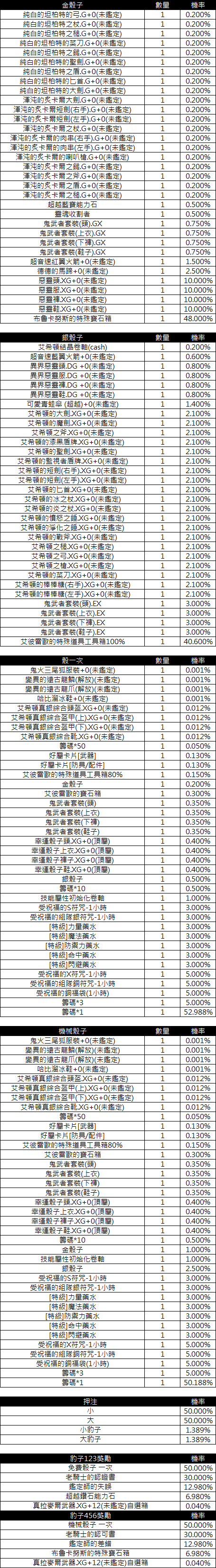本周活動內容物與機率公布如下,注意事項請至活動公告確認,謝謝。