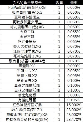活動:1127_黃金臭襪子 伺服器:哈比兔、勇者咕咕