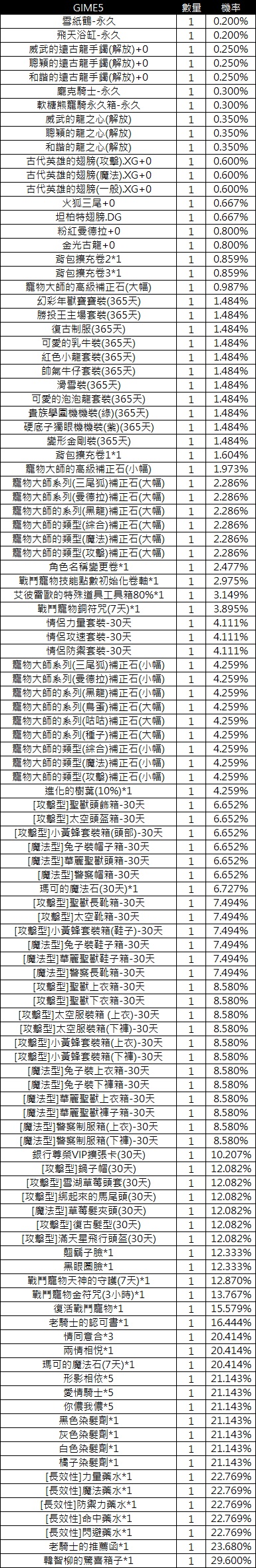 本次活動內容物與機率公布如下,注意事項請至活動公告確認,謝謝。