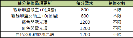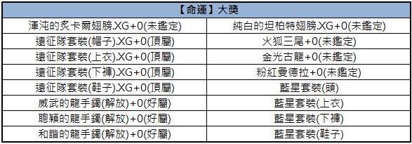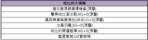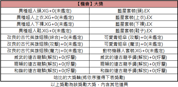 (列表僅供道具數值參考用,內包含非本次活動之獎勵道具)