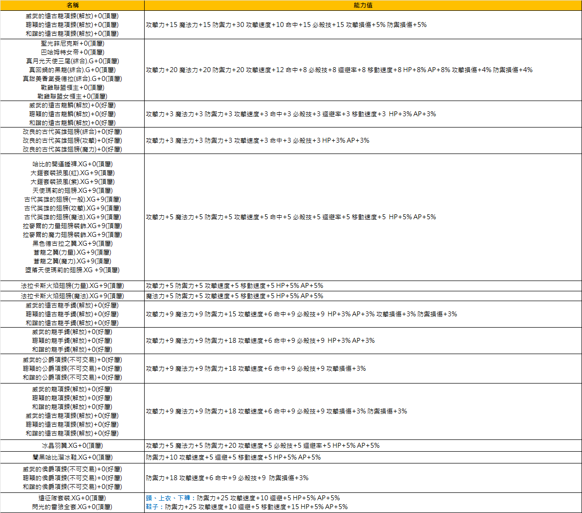1. 過往已經發布過的裝備道具屬性、設定將不另外說明,玩家可依照先前發布的內容為主。