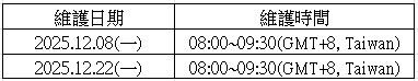 維護時間若有變動,請以MyCard官方網站公告為主。
