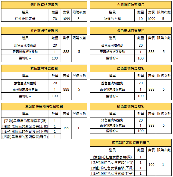 ※點選組合包價格,即會立刻購買,請玩家留意※