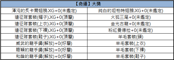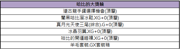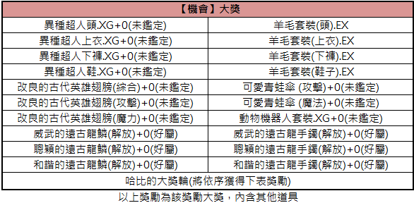 (列表僅供道具數值參考用,內包含非本次活動之獎勵道具)
