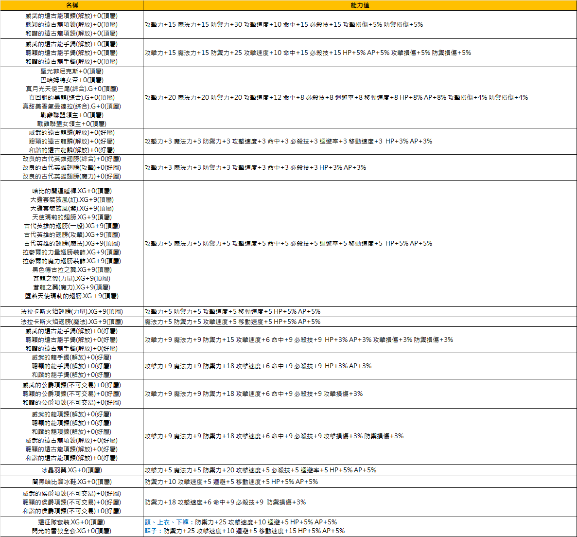 1. 過往已經發布過的裝備道具屬性、設定將不另外說明,玩家可依照先前發布的內容為主。