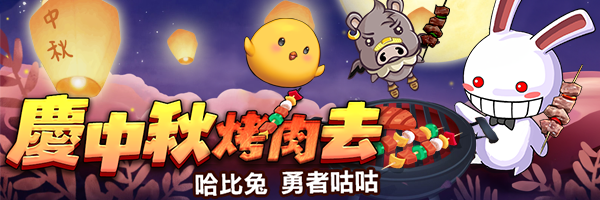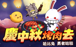 一年一度中秋節終於來啦,一家烤肉萬家香,現在只要烤肉就有機會獲得【渾沌純白武器.G、超越藍寶能力石、歡呼套裝、艾希頓真銀綜合套裝.XG、哈比溜冰鞋、超音速藍(紅)翼火箭、德德的馬蹄】,達到指定金額還可把 炸彈人服裝_S帶回家喔!